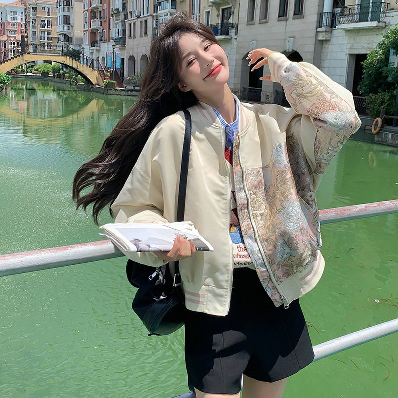 سترة بيسبول أمريكية من Real Shot سترة نسائية قصيرة للربيع والخريف 2024 سترة طيران صغيرة جديدة لملابس العمل