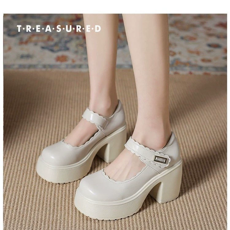 قاع سميك 10 سم من الدانتيل الخشن وعروس ماري تشهينجي أحذية