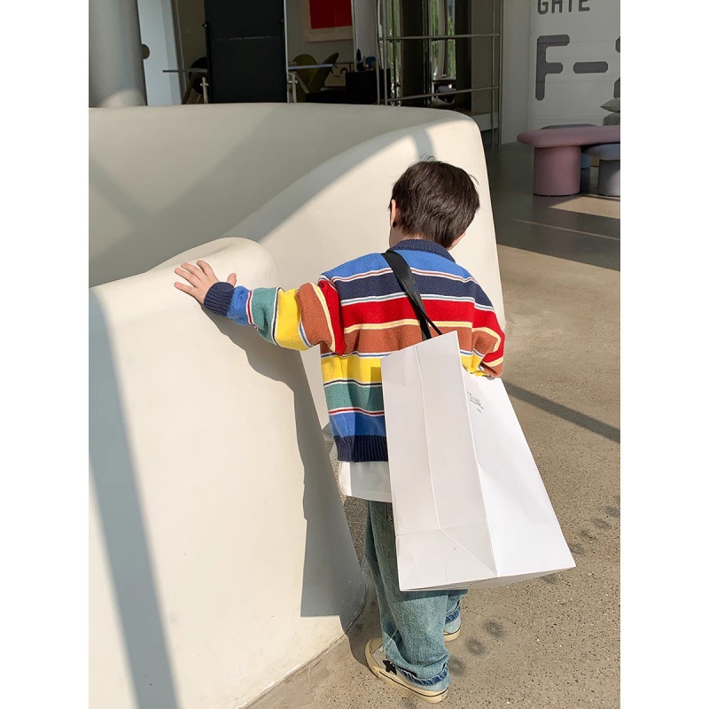 سترة موري للأولاد 2024 للربيع والخريف لون جديد مخطط موضة سترة مشغولة من الصوف للأطفال وسيم كل مباراة سترة