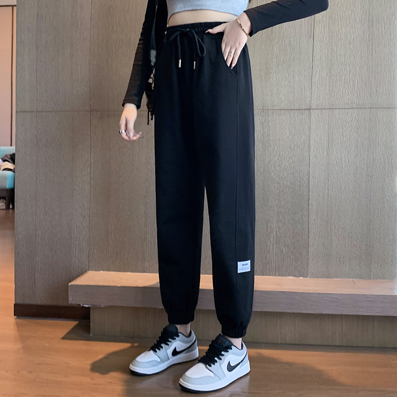السراويل الرياضية النسائية الربيع والخريف Sweatpants السراويل الصغيرة اقتصاص فضفاضة الساق سراويل تقليدية البنطلونات حجم كبير سراويل نسائية