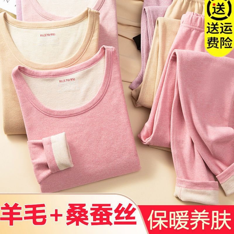 مجموعة ملابس داخلية حرارية من الصوف الحريري المخملي على الوجهين للخريف والشتاء ملابس وسراويل من الصوف السميك
