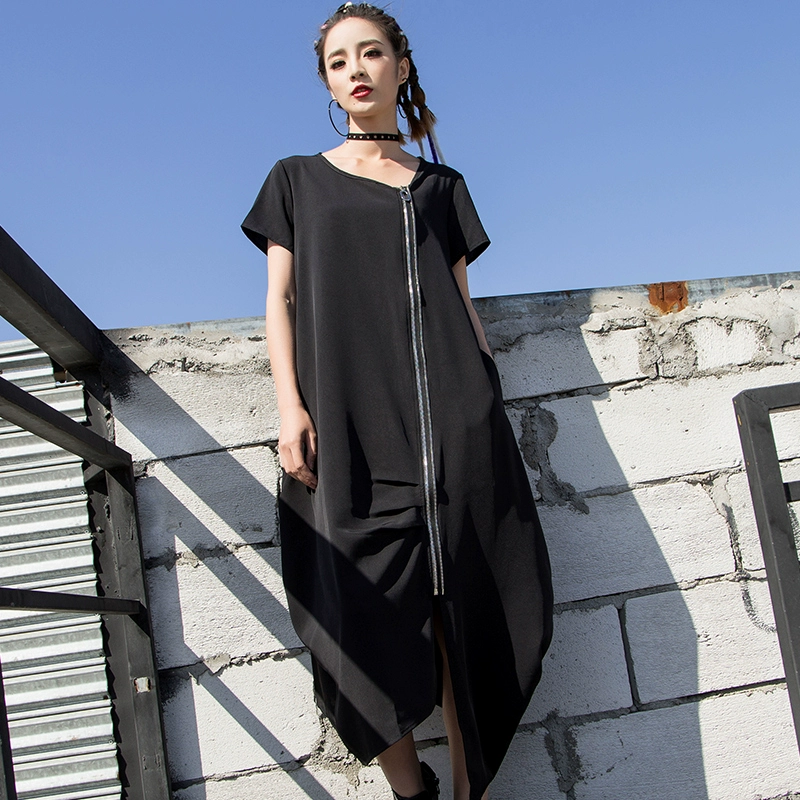 فستان ذو سحاب مزدوج غير منتظم بحاشية كبيرة وفضفاضة