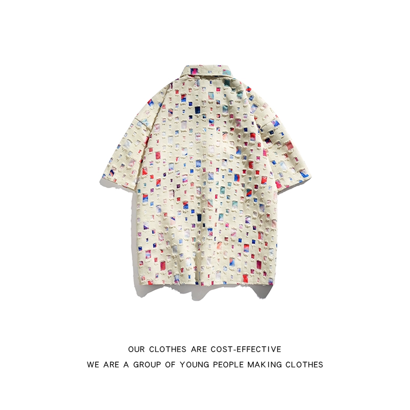 أزياء ألوان روك مربعة صفراء القميص القصير -القميص