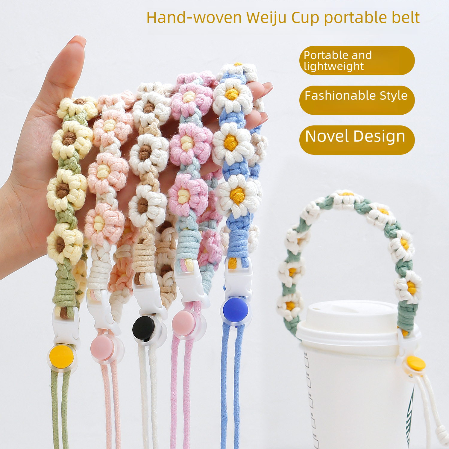 كوب ماء رياضي منسوج يدويًا غير تراث، حزام محمول عالي الجودة، كوب ماء محمول من ديزي، حبل قابل للحمل