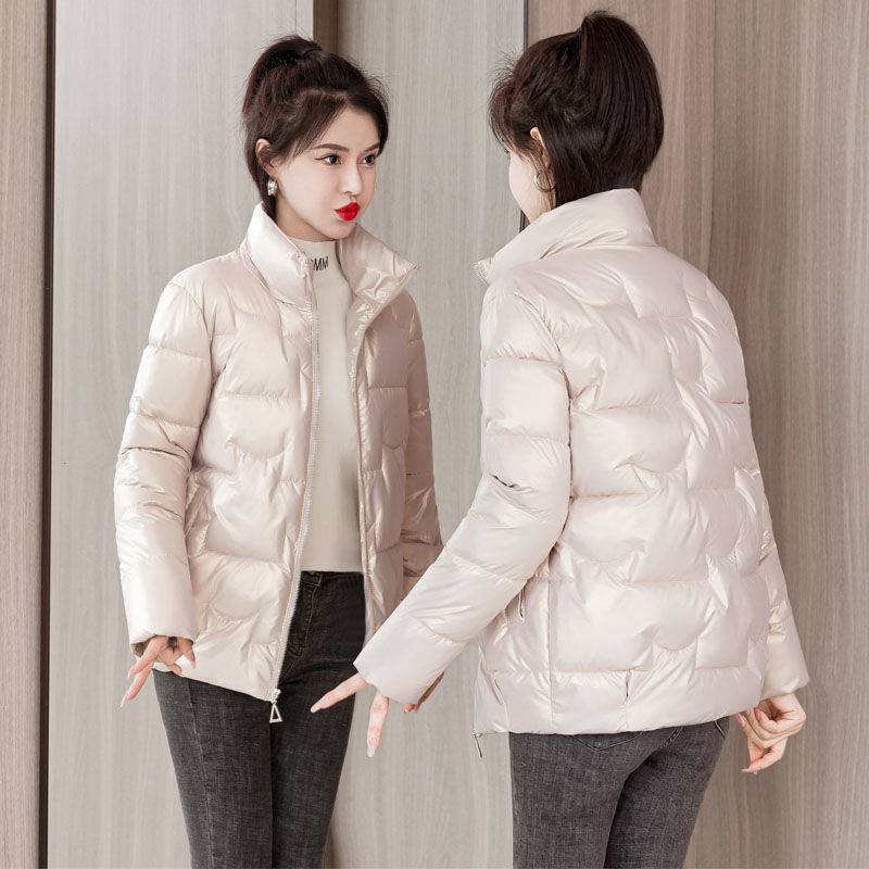 2023 الربيع والخريف جديد خفيف الوزن أسفل سترة مبطنة بالقطن المرأة قصيرة خلل الوجه قابل للغسل طوق الكورية نمط القطن مبطن الملابس النسائية معطف العصرية