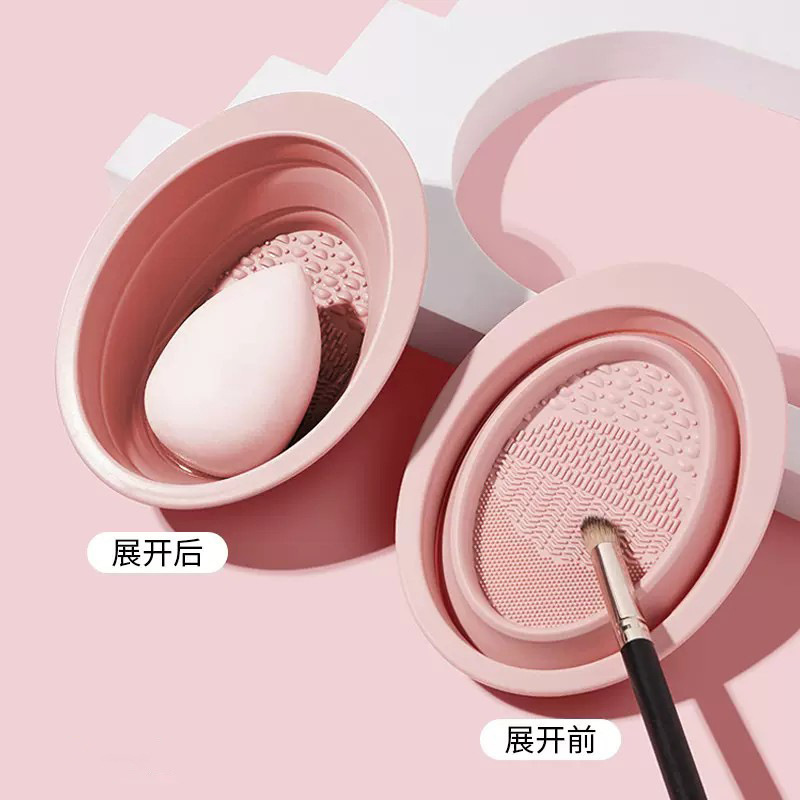 متوفر فرشاة مكياج بيضاوية قابلة للطي من السيليكون، وعاء فرشاة غسيل بالجملة، فرشاة تنظيف مسحوق البيض، وعاء تنظيف قلم الحواجب