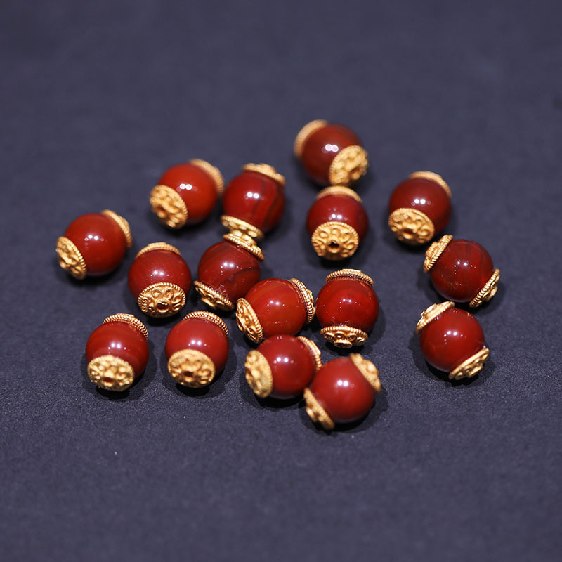 الطبيعية جنوب الأحمر جولة حبة Lutong s925 الفضة مطلية بالذهب الاكسسوارات سوار قلادة diy اليدوية حبة المنتجات شبه المصنعة