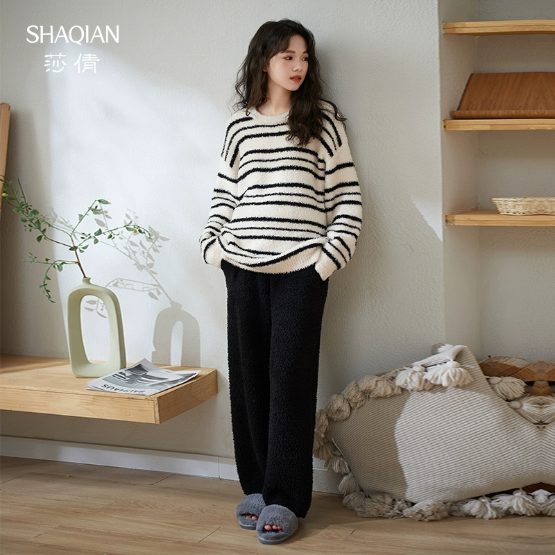 خطوط Sha Qian نصف مخملية وسميكة للحفاظ على دفء بيجامات الزوجين