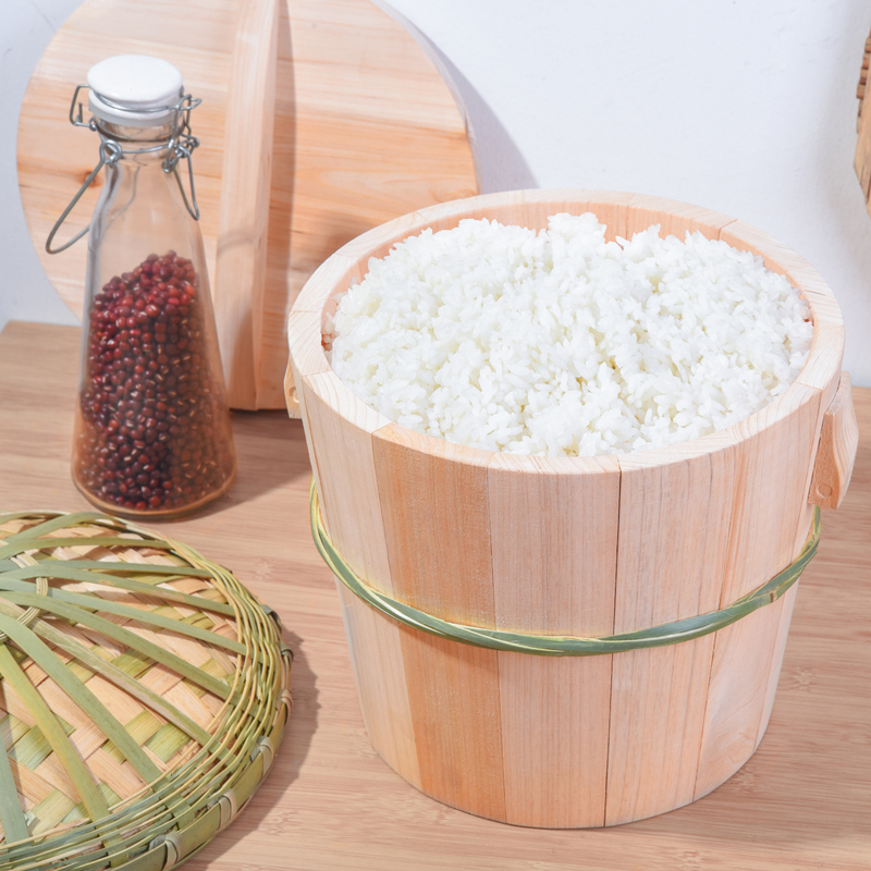 أرز على البخار من شجرة لاي تون في برميل خشبي، أرز طبخ في برميل خشبي، أرز على البخار في خشبي على البخار مع حجم كبير وصغير الحجم من التنوب الصيني وقاع من الخيزران وقاع خشبي