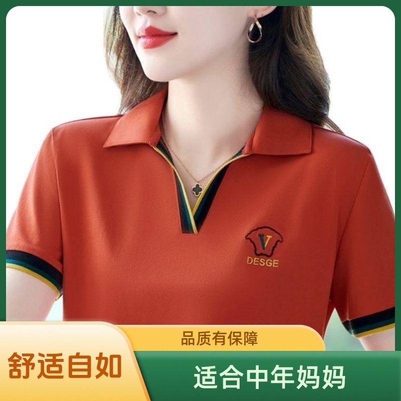 صيف جديد قصير الأكمام تي شيرت المرأة التلبيب حجم كبير فضفاض عادية منتصف العمر الأم قميص بولو بلون سترة رياضية علوية