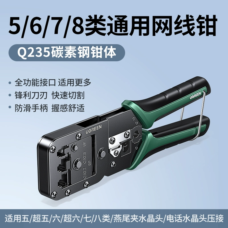 كماشة كابل الشبكة الخضراء، كماشة تجعيد رأس كريستالية احترافية، الهندسة المنزلية، سوبر ستة، سبعة، سبعة، 8P متعددة الوظائف موصل شبكة الهاتف خط عريض RJ45 مجموعة أدوات اختبار كماشة الشبكة
