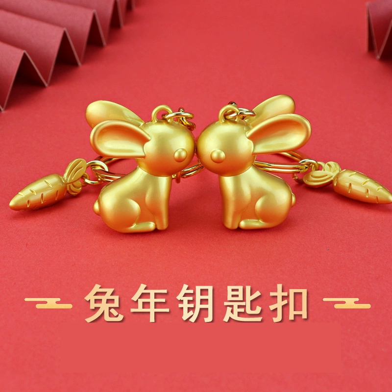 2024 زودياك الفجل الصغير التميمة الذهبية الرنفية الغنية بثلاثة أبعاد أرنب مفتاح مشبك هدايا صغيرة