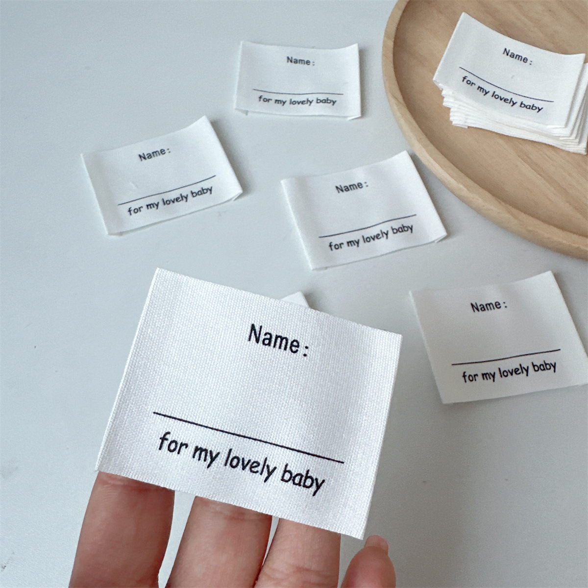 ملصق قماش أبيض لاسم طفلي الجميل، ملصق ختم دمية من القطيفة، ملصق قماش من القطن الخالص