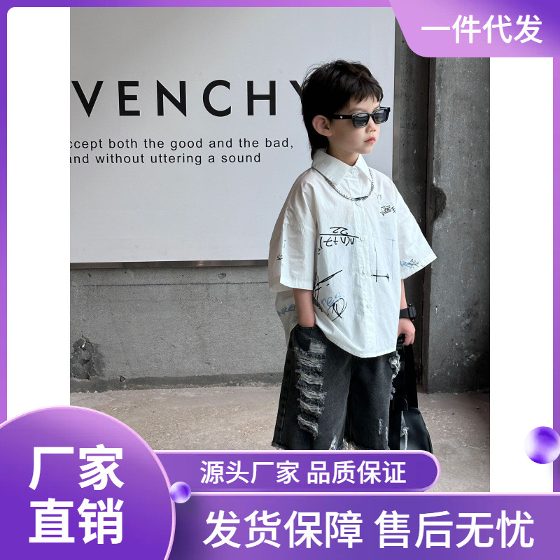 Tiru 2024 صيف جديد الكورية نمط الأولاد موضة عادية كل مباراة تصميم إلكتروني تحسس قميص الأطفال العصرية