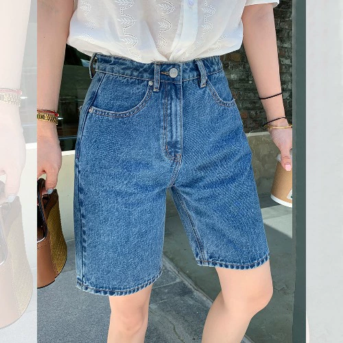 شورت نسائي صيفي كاجوال من قماش الدنيم على الطراز الكوري