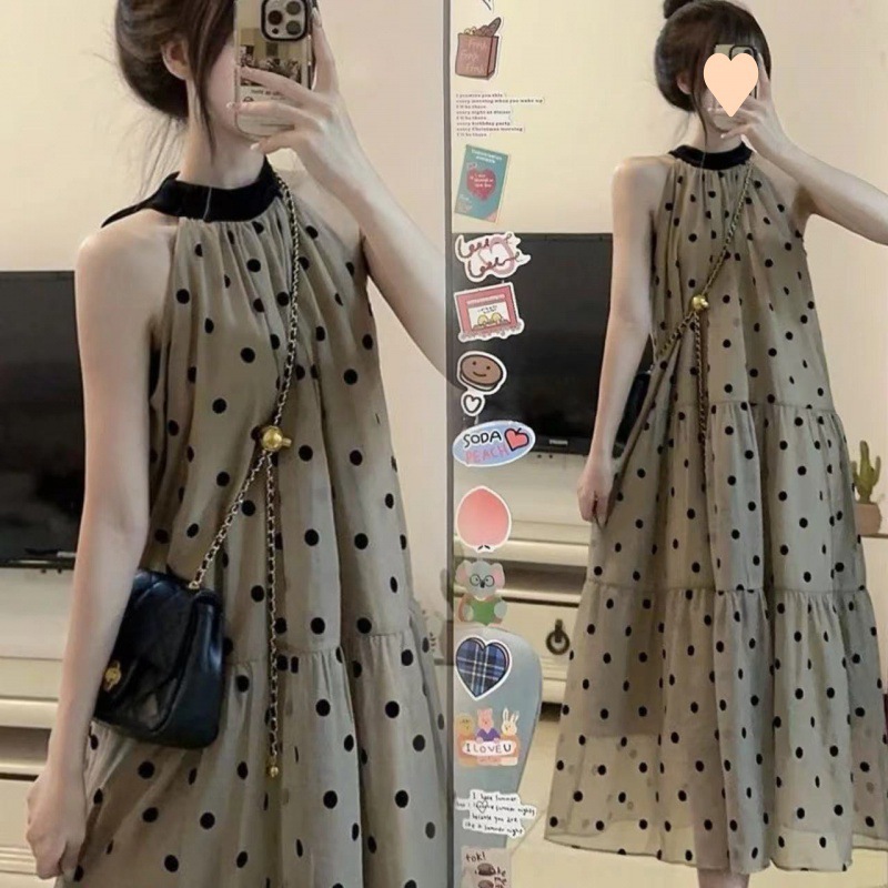 صيف جديد موجة نقطة فستان بكتافة الأطفال سليم صالح التخسيس الراقية فستان طويل هيبورن نمط صغير الخصر فستان طويل