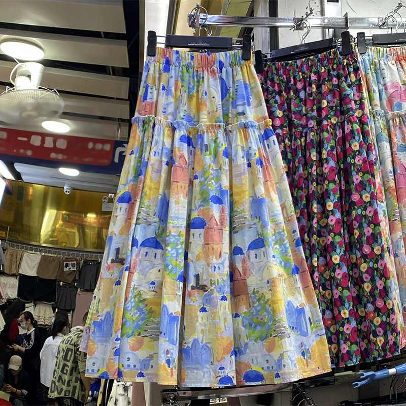 106Q نمط اللوحة الزيتية تنورة عالية الخصر مع حاشية واسعة