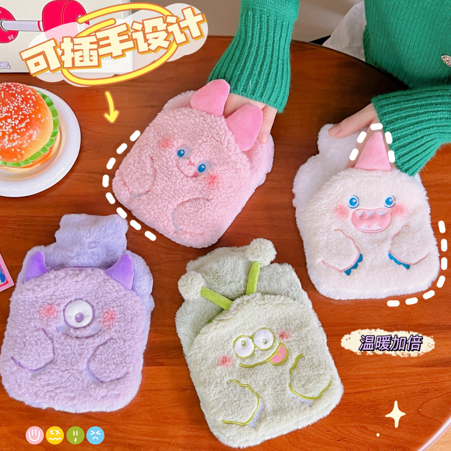 حقن المياه كيس الماء الساخن للبطن الساخن ضغط اليد تحميل المياه ملء أفخم لطيف مضحك الوحش الصغير حقيبة الماء الدافئ الصغيرة لطيف