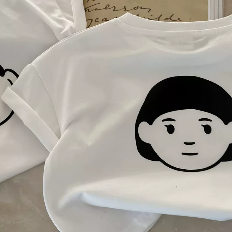 100 ٪ من القطن القطني النقي القطني قصير الأكمام للأولاد والبنات 2024 جديد كرتون طباعة الأطفال الصيف العصري