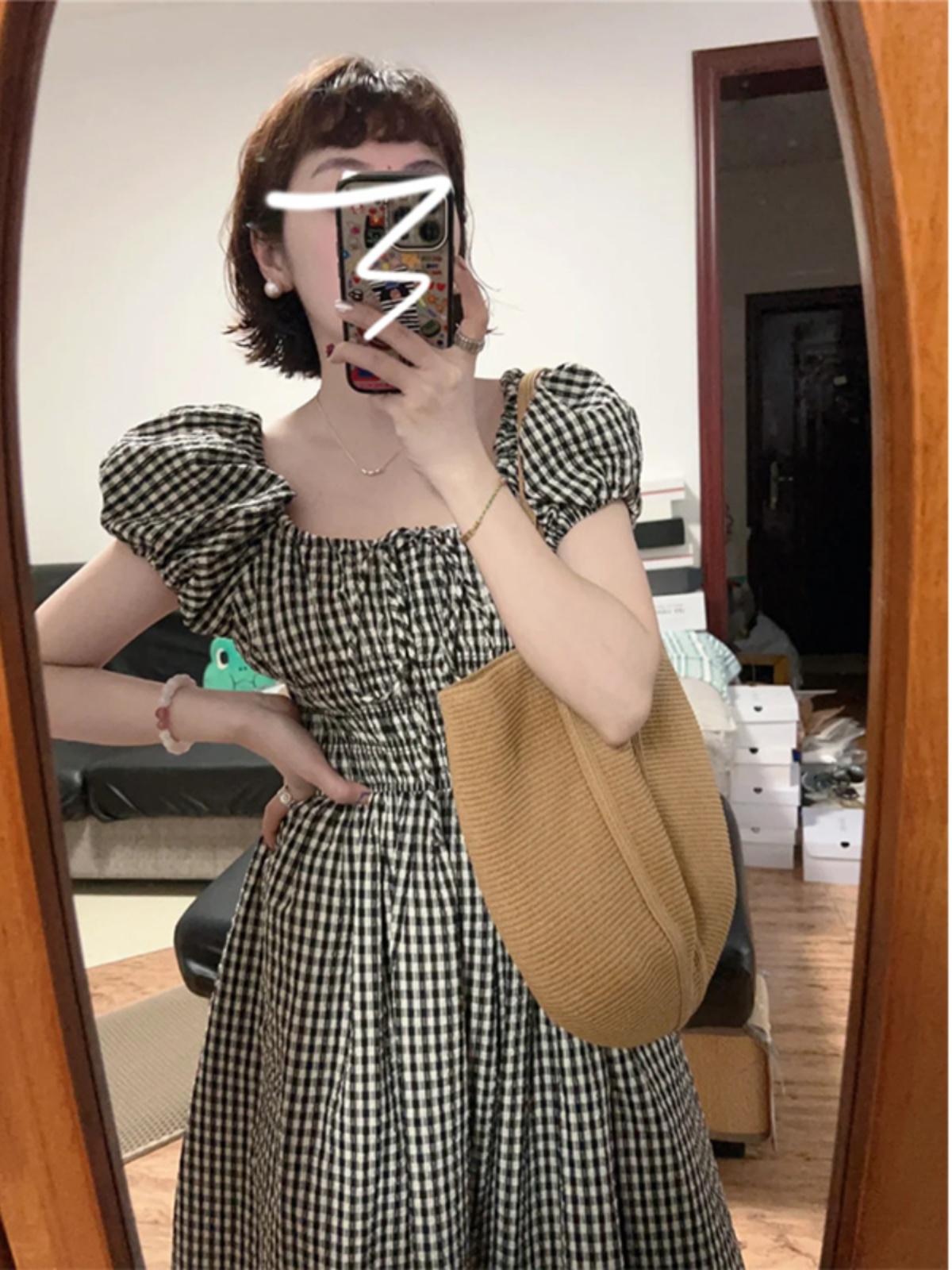 A A FAT MM الفرنسية الرجعية المتجاعدة منقوشة الأكمام قصيرة