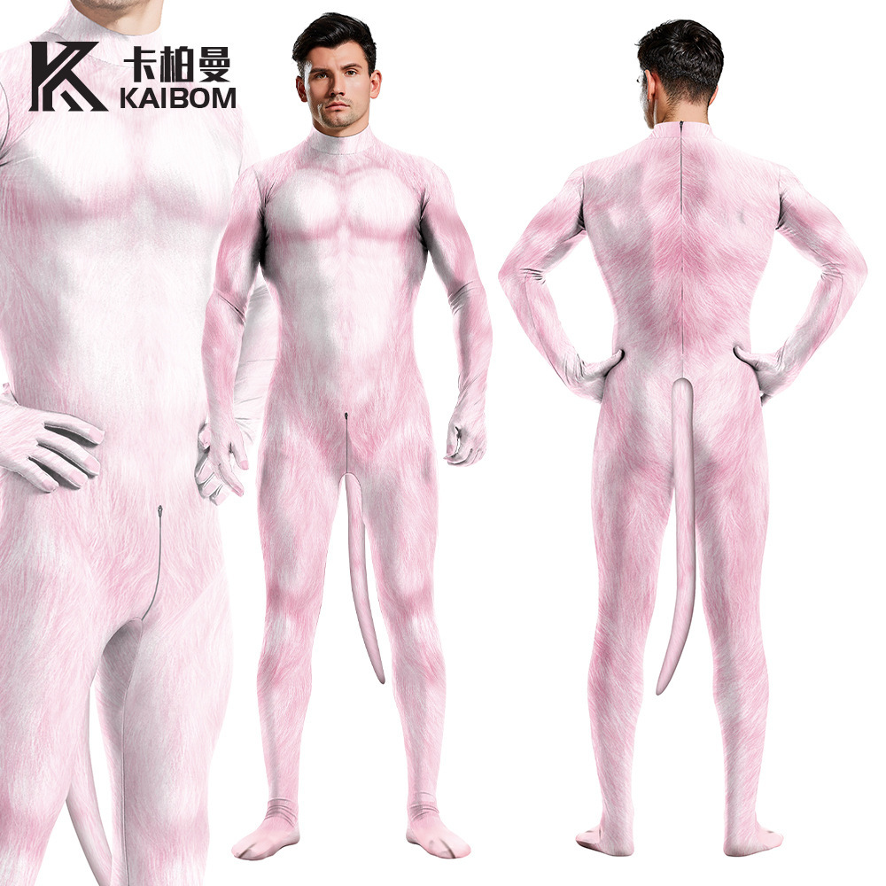 التجارة الخارجية الجديدة COS الوردي الحيوان زوجين مثير مطبوعة اليد إلى القدم كامل الجسم حقيبة ضيقة مرحلة الأداء البدلة