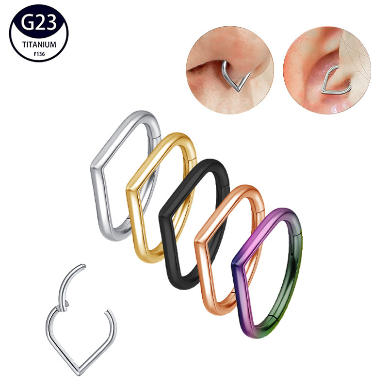 G23 التيتانيوم القلب واحد الزركون الأنف الدائري أقراط ثقب المجوهرات النسائية الأذن العظام الشفاه الدائري F136 سبائك التيتانيوم اللسان مجوهرات أظافر