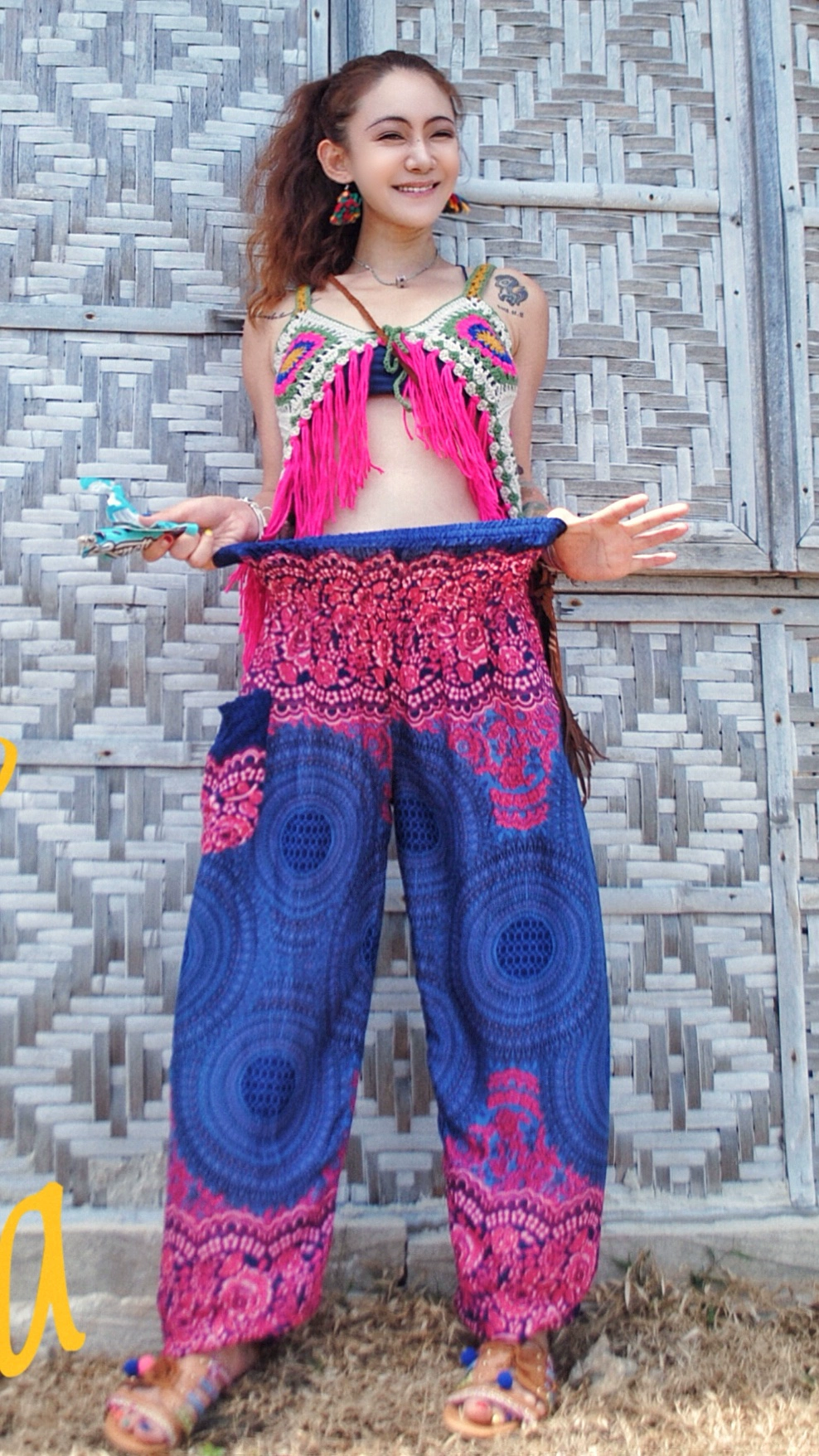 السفر العرقي عالي الخصر إلى الجزيرة وبنطلونات العطلات