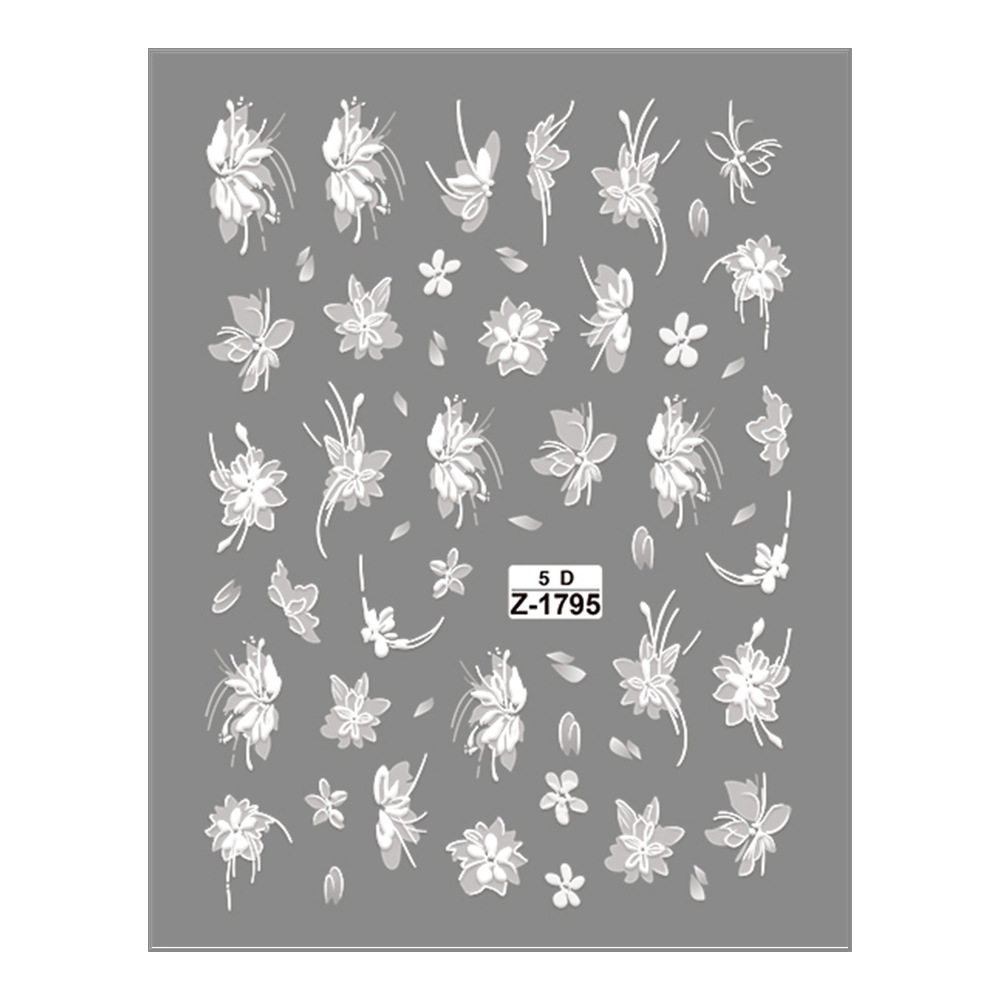 Redanco جديد 5D الإغاثة الربيع الصغيرة زهرة بيضاء مسمار الفن ملصقات ستيريو لاصق ملصقات الأظافر بالجملة