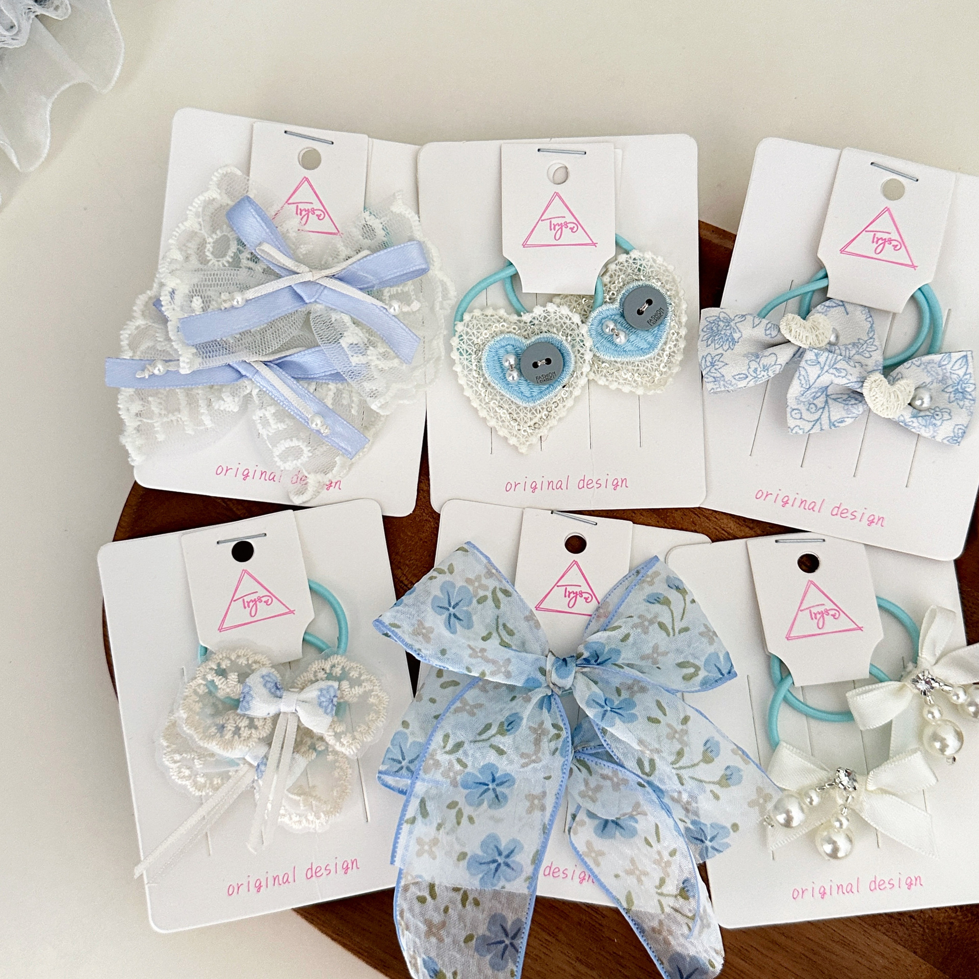 الحلو الأزرق الشيفون الدانتيل القوس الأطفال الشعر الدائري زوج مجموعة الطفل الشعر حبل الشعر حبل الأربطة المطاطية الصغيرة