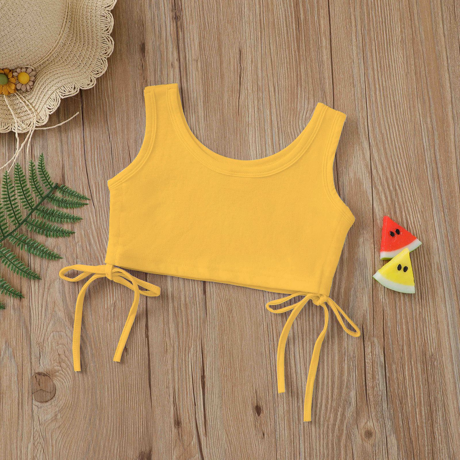 بقعة ملابس الأطفال الجديدة للتجارة الخارجية لعام 2023 للبيع بالجملة على حبل أمازون بلون واحد مكشوف الخصر سترة قصيرة للأطفال