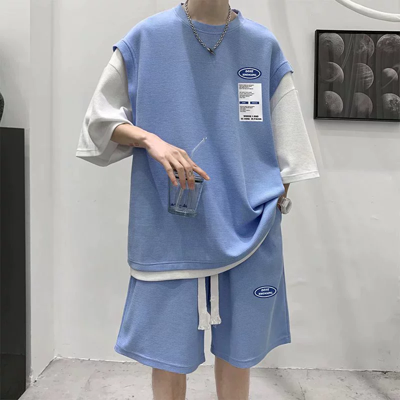 وافل كم قصير صيفي مقاس كبير كرة السلة وهمية قطعتين