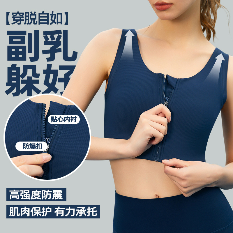 ملابس داخلية رياضية بسحاب أمامي عالي القوة للنساء، وسادة صدر من قطعة واحدة قابلة للتنفس، سترة يوجا للجري مقاومة للصدمات