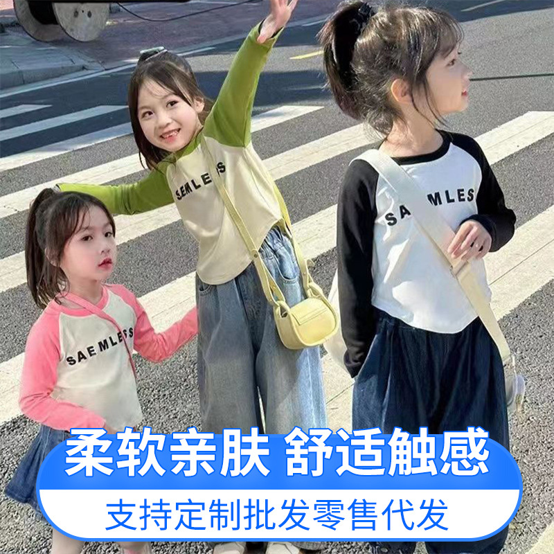 الفتيات تي شيرت طويل الأكمام الربيع الأطفال قاع قميص 2024 نمط جديد الفتاة المد العلوي ملابس الأطفال الربيع بالجملة