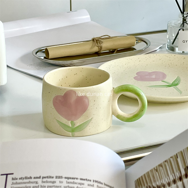 JZ48 الكورية نمط Ins رسمت باليد زهرة القدح السيراميك الصغيرة الطازجة خمر كوب ماء المنزلية المرأة فنجان القهوة المتخصصة