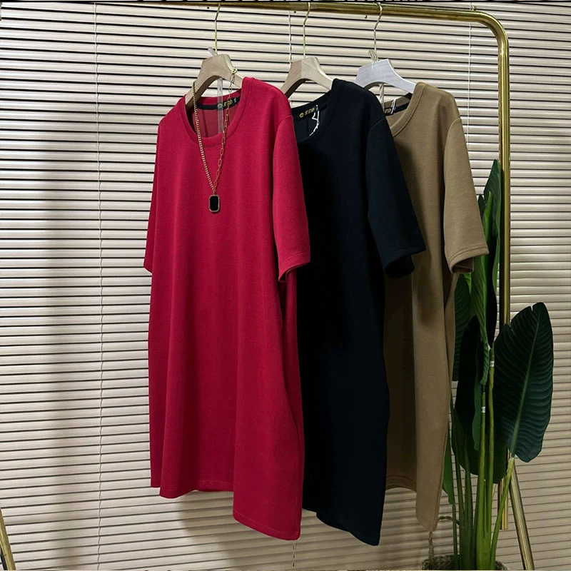 بلوزة قصيرة الأكمام بسيطة ومتعددة الاستخدامات للفتيات السمينات بمقاس كبير
