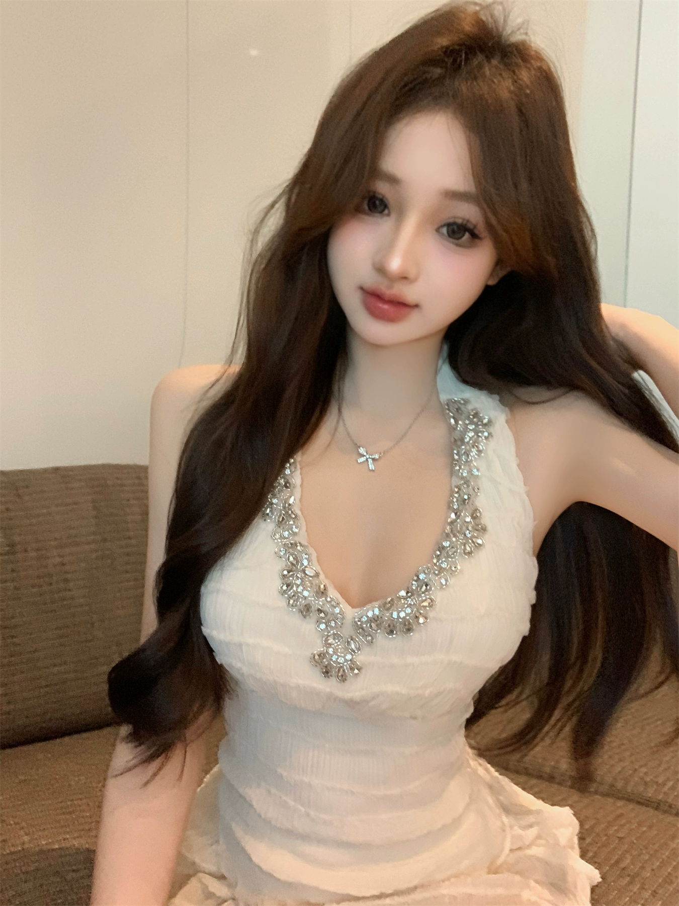 حمالة رسن صيفية بدون ظهر مصنوعة من الماس من الصناعة الثقيلة للنساء
