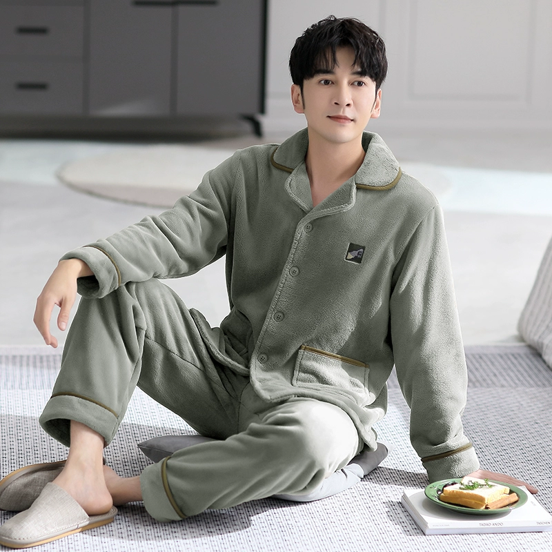 بيجاماس للرجال شتاء سميكة وأزرار مخملية المرجان المخملي في الشتاء يمكن للرجال ارتداء سحابة مخملية بدلات الملابس المنزلية