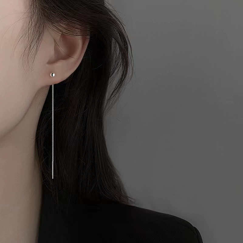 S925 فضة إبرة الفول الأذن سلك المرأة بسيطة مستديرة أقراط للأذن مزاجه صغيرة فضة الفول أقراط 2023 نمط جديد
