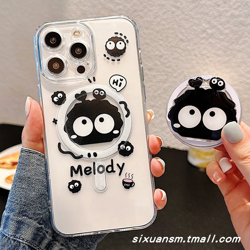 هاياو ميازاكي كارتون 12 قوالب سوداء لطيفة للغاية 13 شحن لاسلكي مغناطيسي Magsafe مناسب لحافظة الهاتف المحمول Apple 15/14 iPhone 16 Promax Creative Stand غطاء حماية شفاف 11