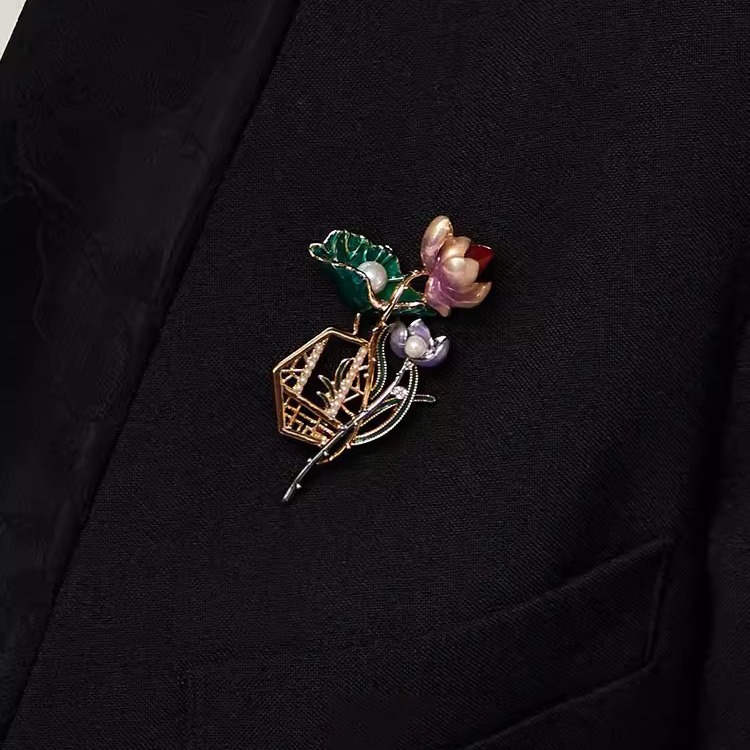 الموضة الوطنية الأخضر لوتس لوتس فضة بروش خمر النمط الوطني الفاخرة العقيق الصدار معطف اكسسوارات الإناث هدية لكبار السن