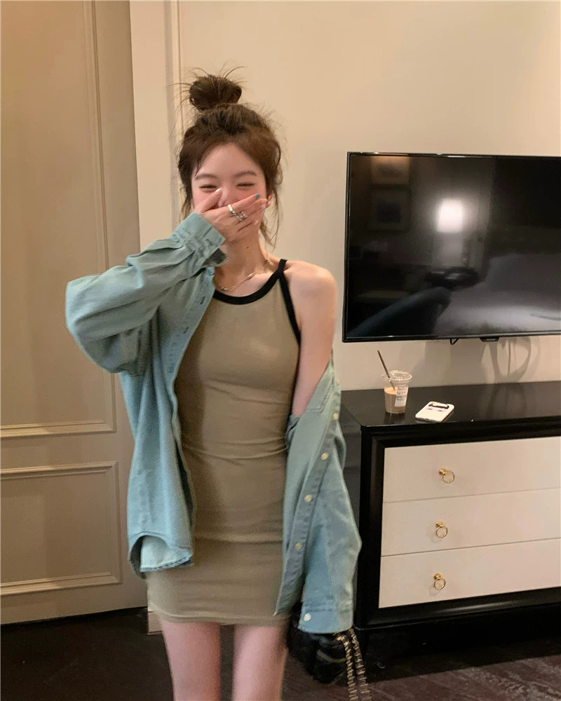 قميص جينز أنيق ذو طية صدر السترة للطلاب
