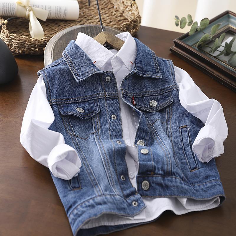 الأطفال سترة الربيع والخريف الفتيات طفل يرتدي جاكيت بلا إكمام النمط الغربي 2023 جديد الأولاد سترة دينم العصرية ملابس أطفال