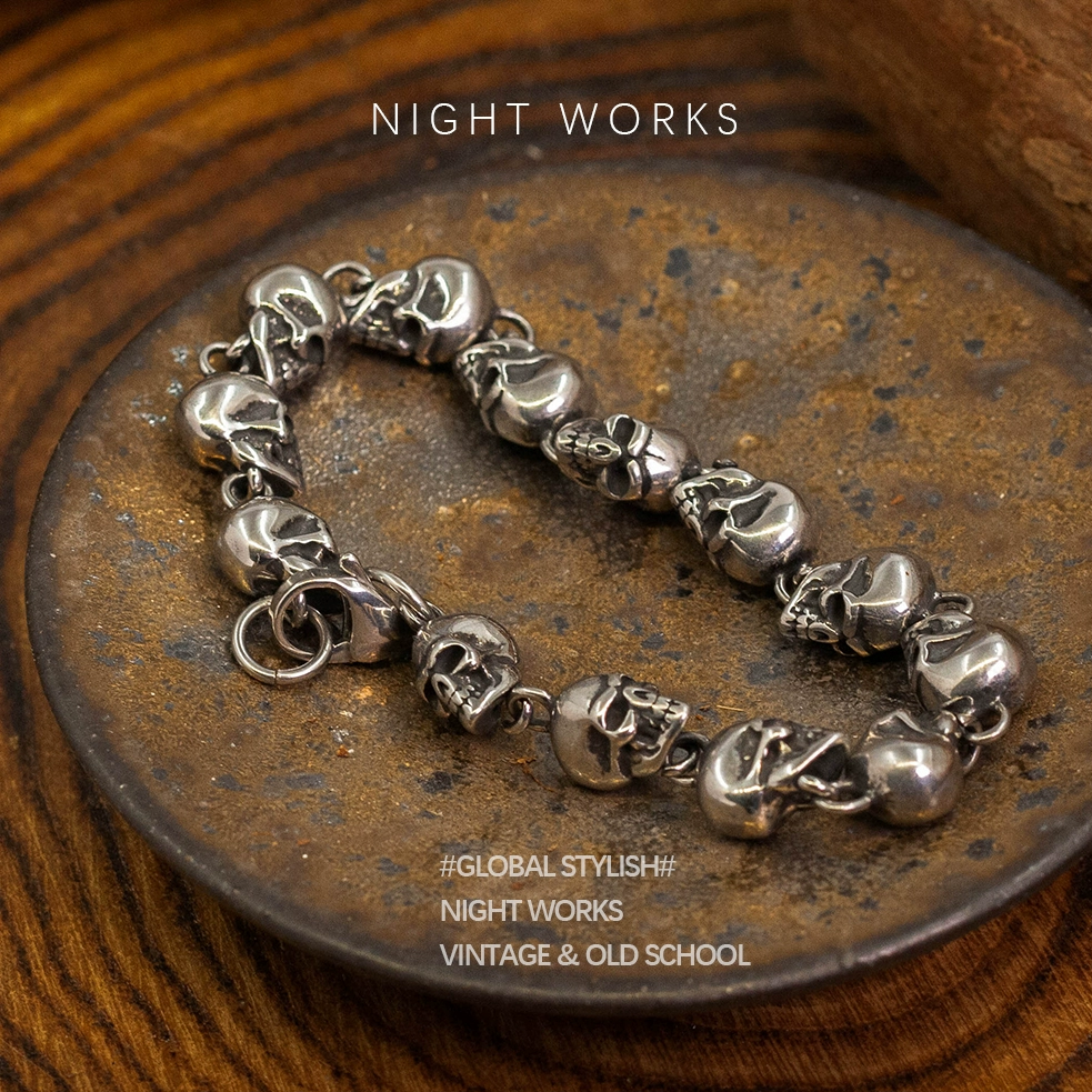 Night Works ثقيلة Diablo Skull Solid Pearl Retro Titanium Steel Punk Bracelet Men’s Tide