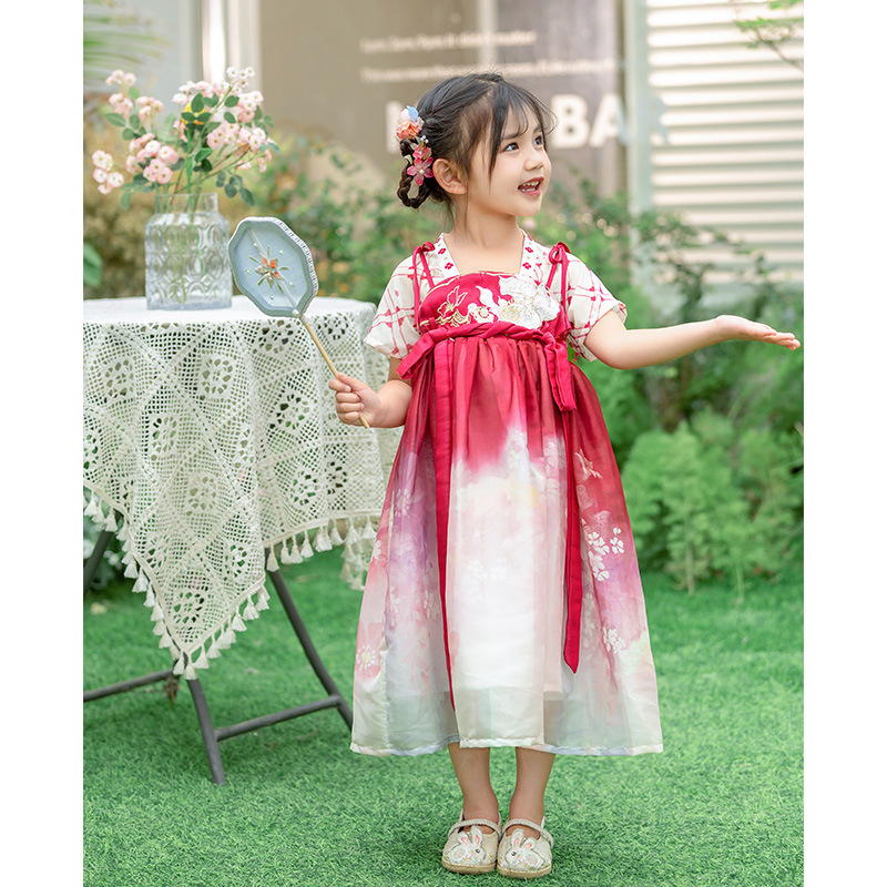الفتيات Hanfu صيف جديد النمط الصيني سوبر الجنية البدلة القديمة النمط القديم المطرزة زهرة كبيرة تانغ دعوى تنورة النمط القديم رو الأميرة تنورة