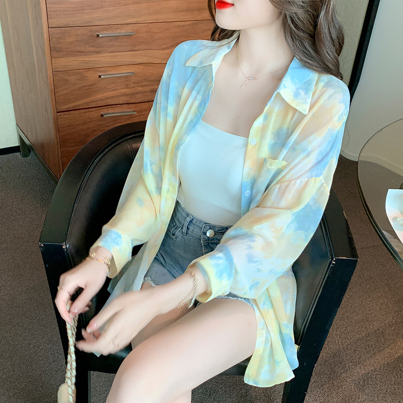 قميص عصري للسيدات على الطراز الكوري من Real Shot موضة صيف 2024 سترة شيفون فضفاضة رائعة قابلة للتنفس واقية من الشمس
