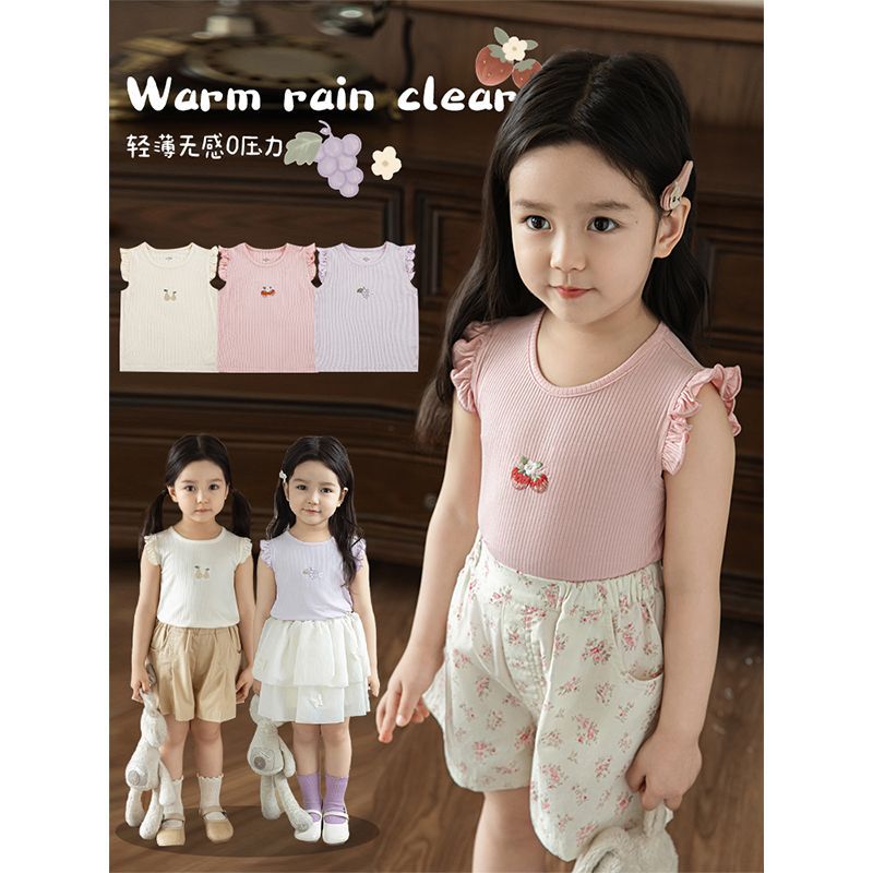 Wuri Boo فتاة الفاكهة المطرزة الأذن حافة سترة دون أكمام الصيف لطيف كثيفة حافة تحلق كم رداء علوي غير رسمي العصرية