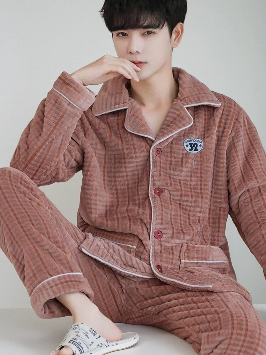 بدلة رجالية منامة مخملية مرجانية سميكة للربيع والخريف والشتاء بالإضافة إلى ملابس منزلية من الفلانيل المخملي 2024 فضفاضة جديدة