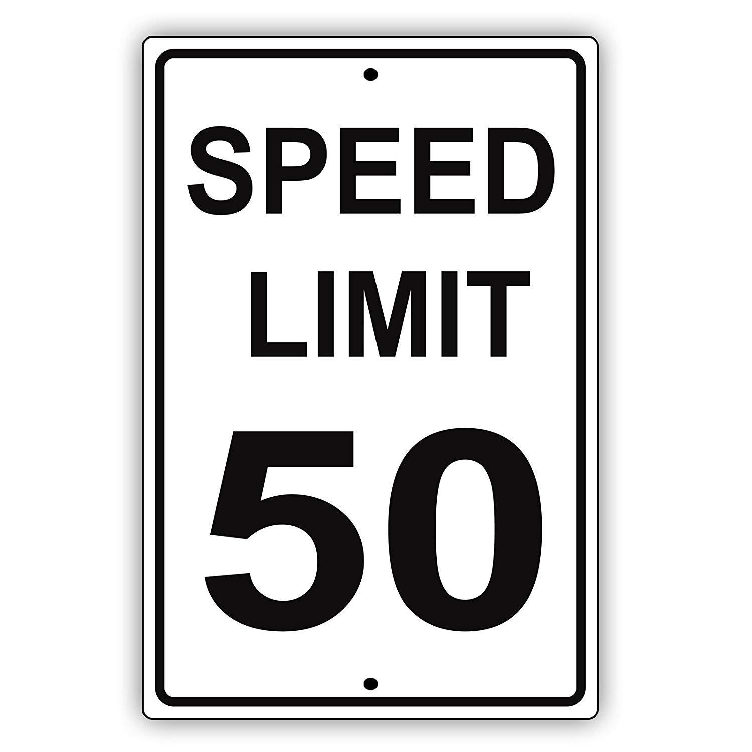 حد سرعة علامة التحذير 50 ميلا في الساعة، ميلا في الساعة، الحروف السوداء