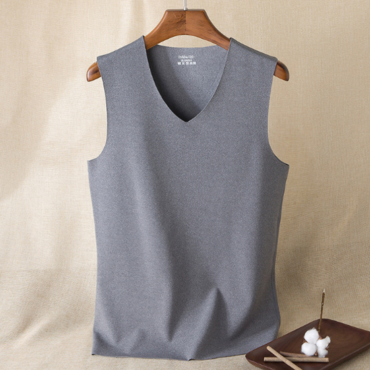 سترة حرارية للرجال للخريف والشتاء بقاعدة ملابس داخلية مخملية مبطنة رفيعة على الوجهين بدون أكمام سترة رجالية