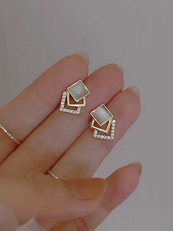 حجر عين القطة الأنثوي من الذهب عيار 14 قيراط مربع ياباني وكوري بسيط وأنيق